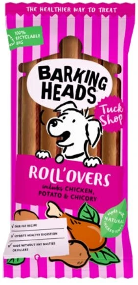 Our Barking Heads Tuck Shop range is the natural, healthier way to treat. Our natural, low fat Roll’overs recipe contains high-quality chicken, and contains no artificial flavours or preservatives whatsoever, for a nutritious treat that’s easily digestible (for those perfect poops!). Spirulina is also added as a source of essential fatty acids, to help support a healthy skin & coat.
