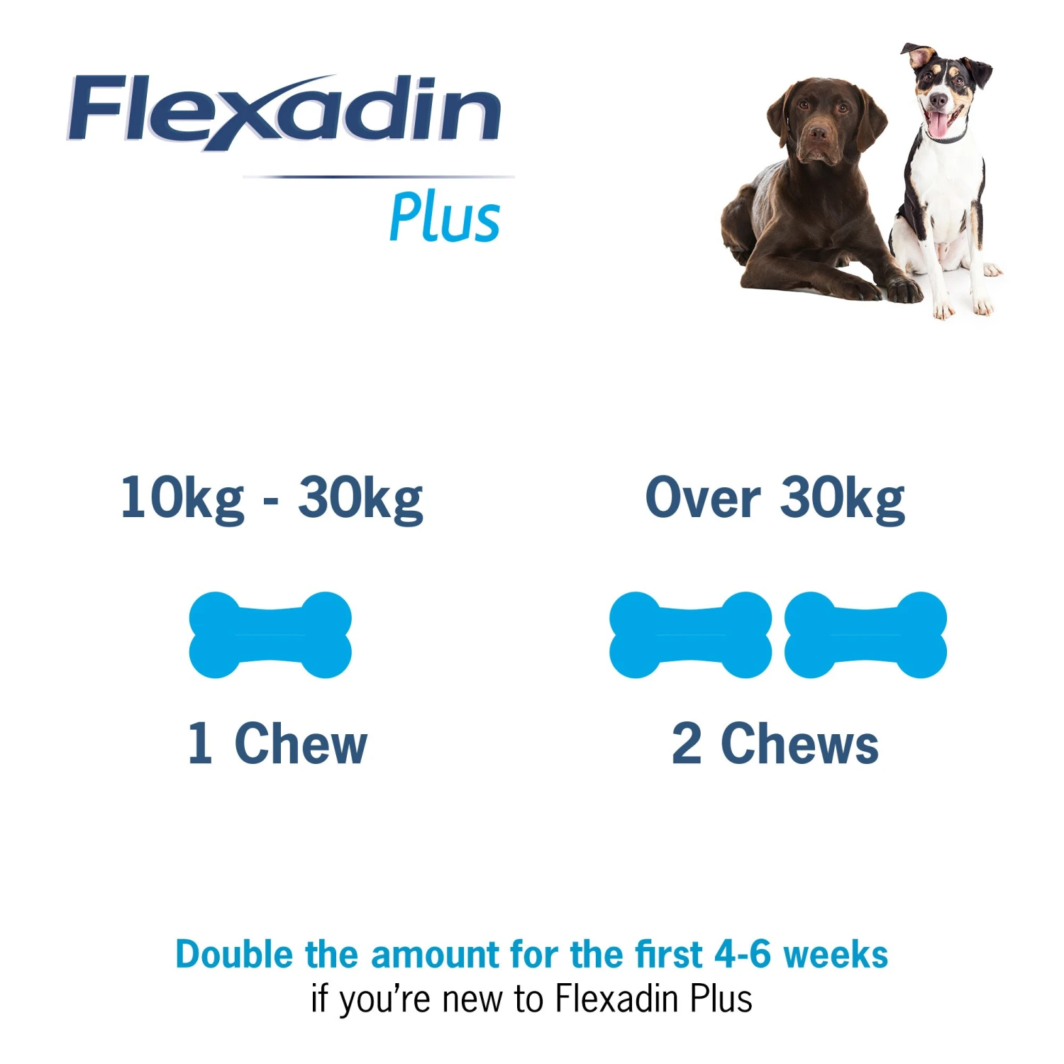 Double the amount for the first 4-6 weeks if you’re new to Flexadin Plus.