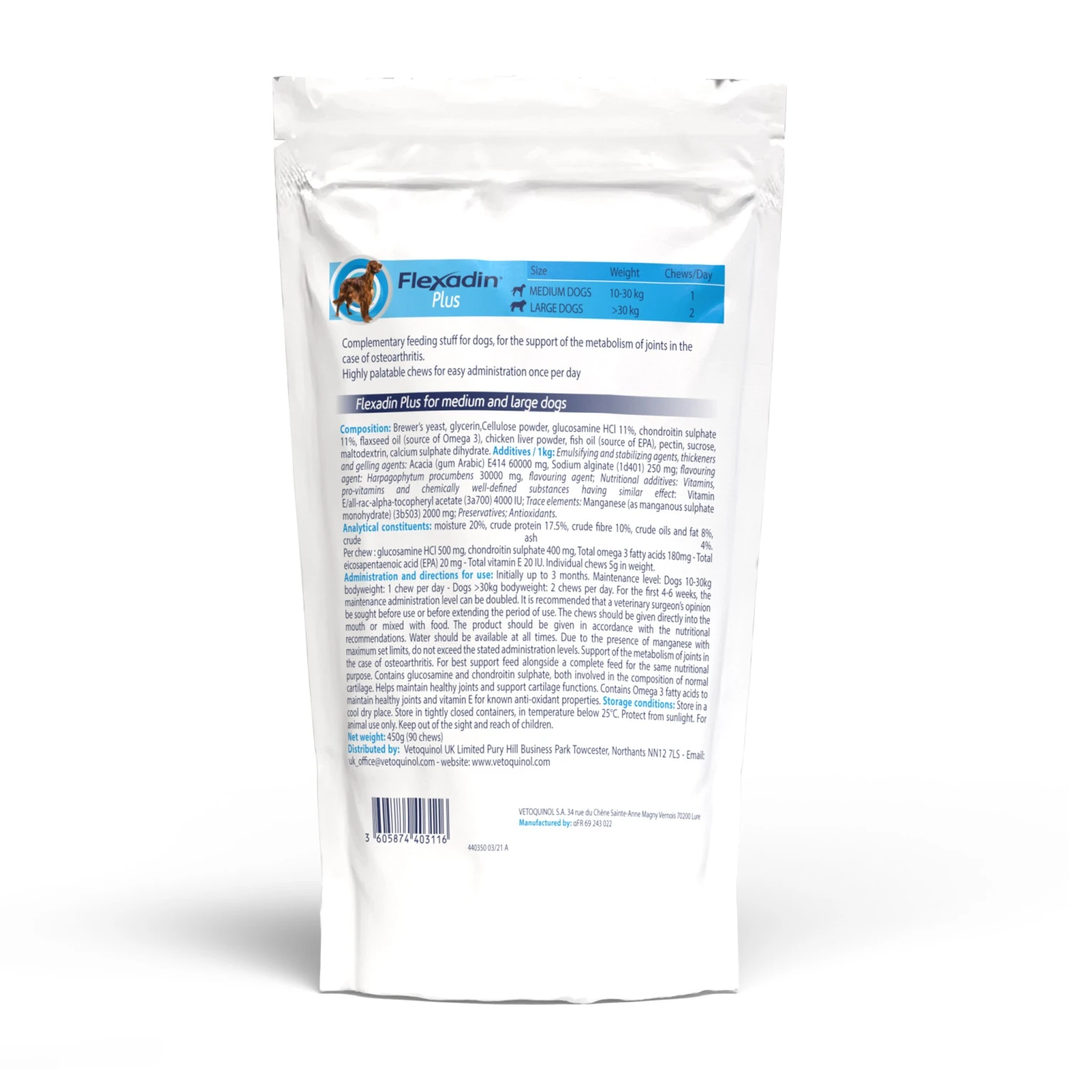 Packed full of flavour, Flexadin Plus soft chews contain a unique combination of active ingredients that helps improve joint mobility, providing joint care for dogs and cats from general wear and tear, inflammation and to maintain the structure of the cartilage.