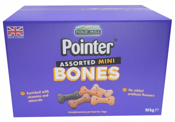 Our Pointer Assorted Mini Bones are tasty oven-baked treats and a great size to be used as a treat, reward or training aid for dogs. A popular traditional dog biscuit.