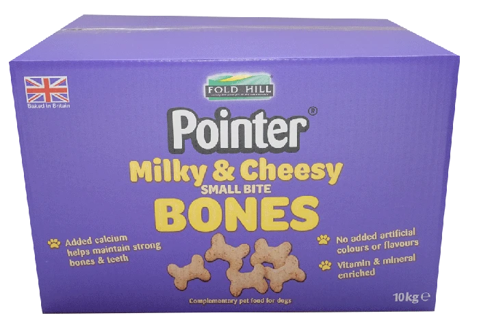 Pointer Milky and Cheesy Small Bite Bones are vitamin and mineral enriched, with added calcium to help maintain strong bones & teeth.