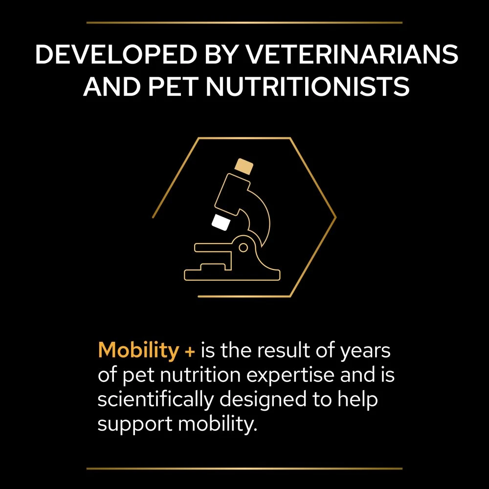 PRO PLAN Mobility + helps keeps your dog’s paws ready to pounce, as it contains a blend of eggshell membrane (source of collagen), purified hyaluronic acid, green lipped mussel and glucosamine, and is scientifically designed to: