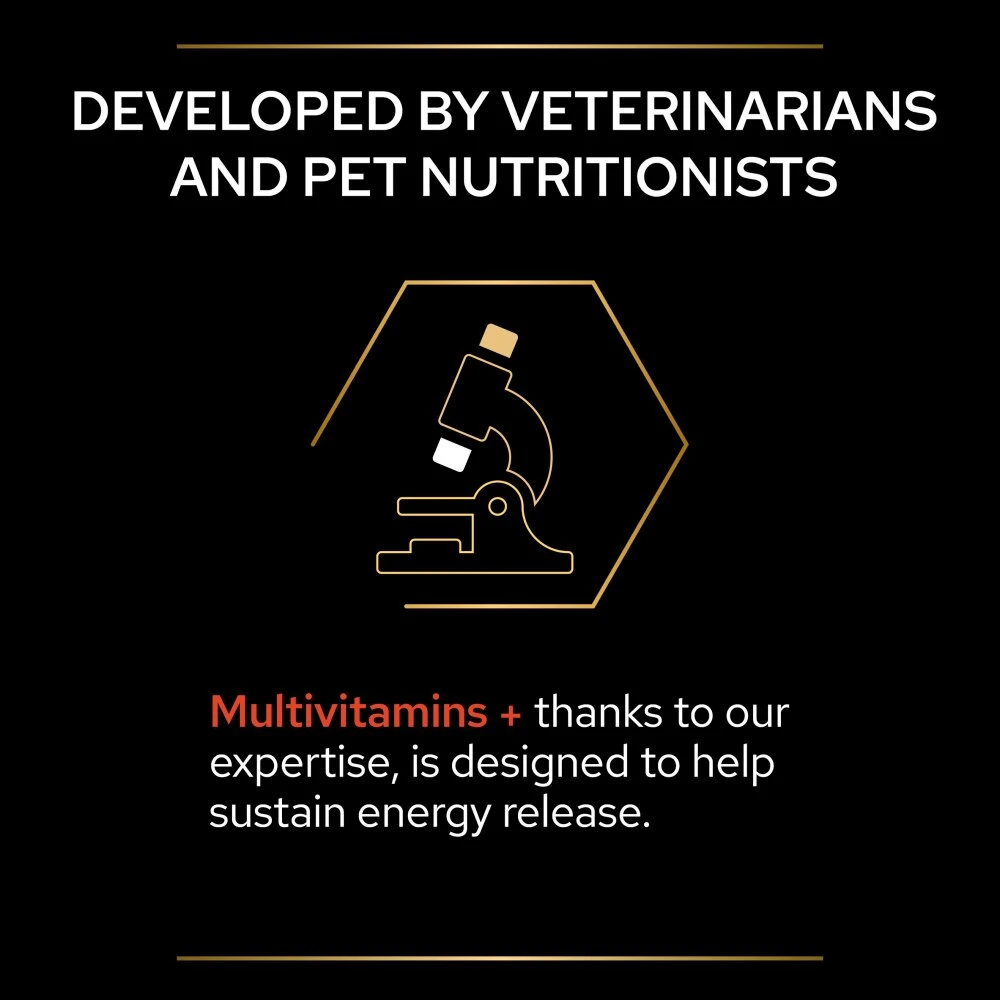 PRO PLAN Multivitamins + keeps your dog’s paws ready to pounce as it contains a vitamin complex (B1, B2, B3, B5, B6, B12), and is scientifically designed to: