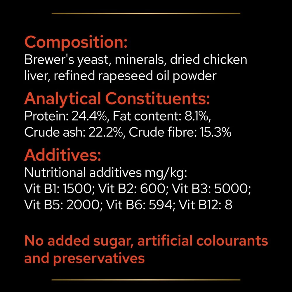 Brewer’s yeast, minerals, dried chicken liver, refined rapeseed oil powder  Â