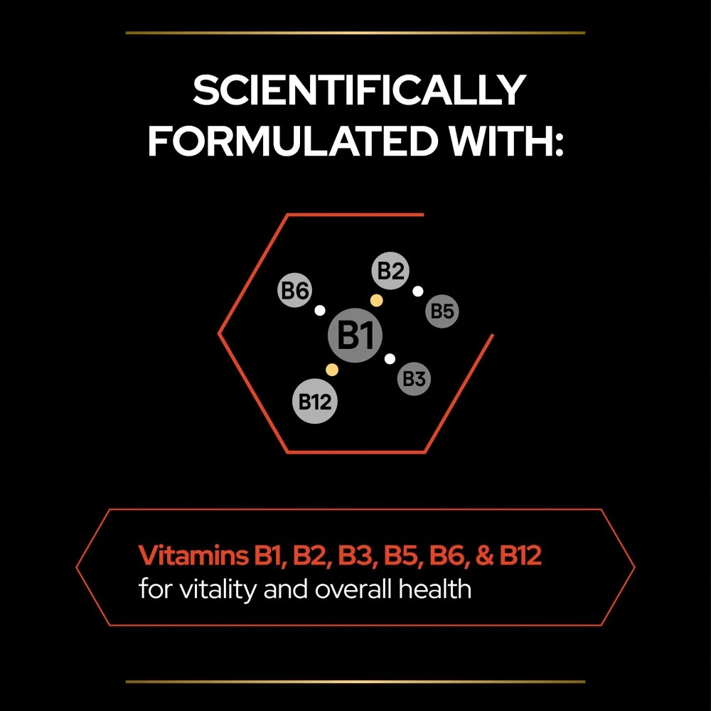 - Vitamins B1, B2, B3, B5, B6, & B12 for vitality and overall health: B-complex vitamins act as a co-enzyme to promote biochemical reactions that change carbohydrates into glucose, providing energy to the body. Â Â