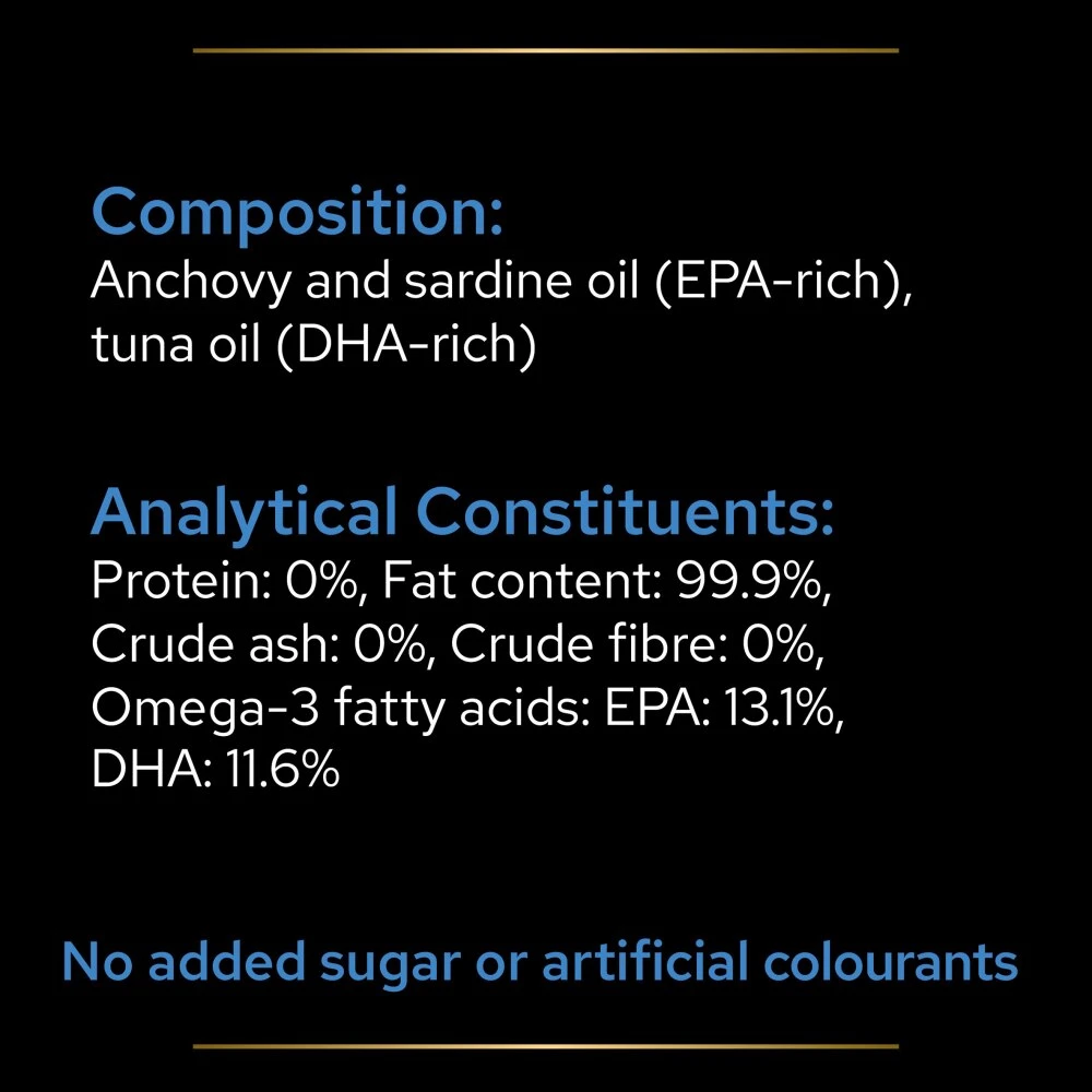 - Naturally helps maintain a positive emotional state, helps soothe excitable behaviours, thanks to selected fish oils, a rich source of omega 3 fatty acids EPA & DHAÂ Â Â