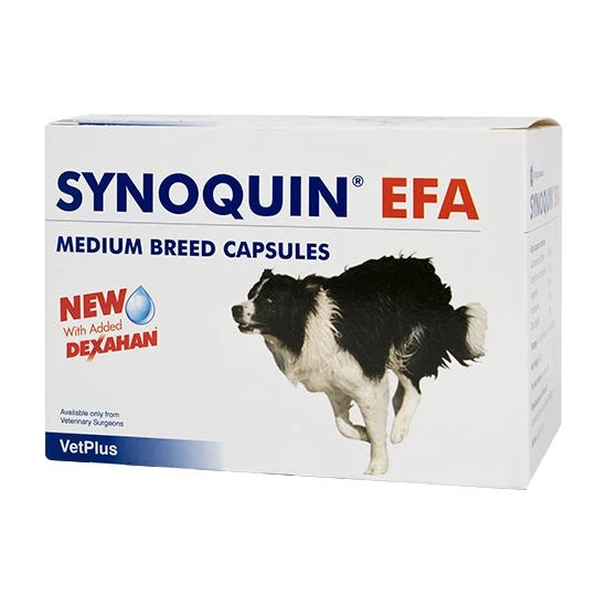 Synoquin is a chondroprotective nutritional supplement containing glucosamine, chondroitin and Dexahan to maintain joint health in dogs. To maintain healthy cartilage and joint fluid, your dog requires a steady supply of key building blocks. Increasing the supply of these building blocks will guarantee their availability and ensure that if a problem occurs Synoquin will continue to provide these building blocks.