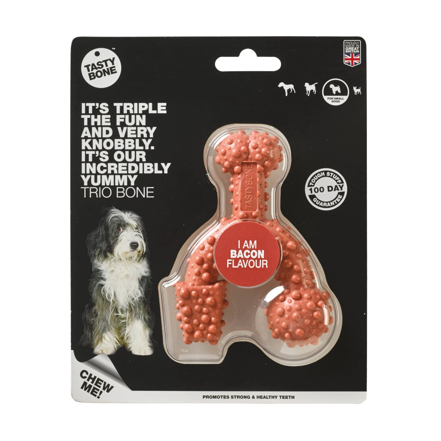 TastyBone TrioBone | Nylon Dog Chew for Small Dogs (Bacon Flavoured) | Exceptionally Tough, Promotes Healthy Teeth & Gums | Triple The Fun | (Made in the UK from 100% Virgin Nylon)Â Â Â