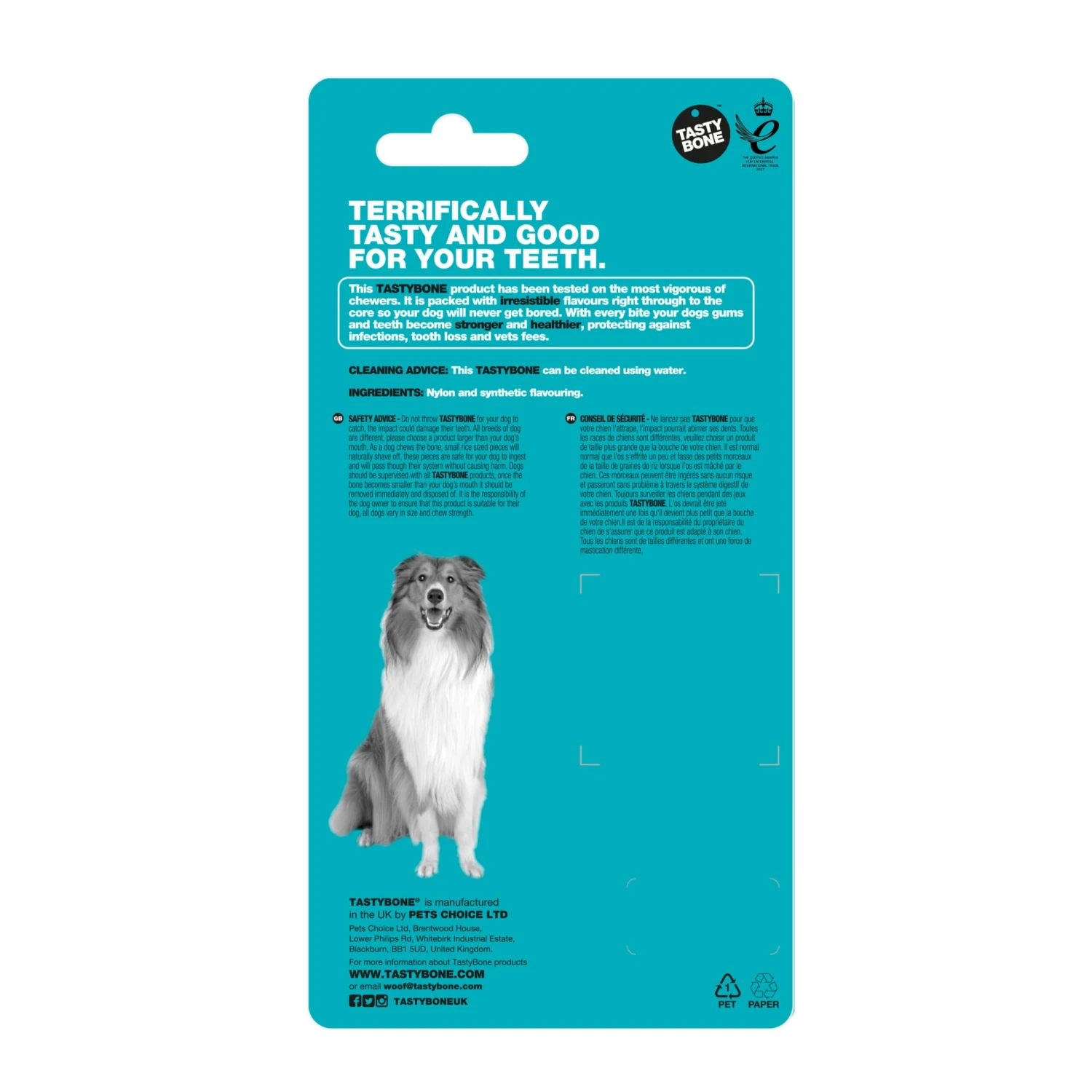 Like all of our nylon chews, this TastyBone product has been tested on the most vigorous of chewers. Made from 100% virgin nylon, it is guaranteed to last. Uniquely infused with irresistible flavours right through to the core, your dog will never get bored, as the flavour will last for the lifetime of the bone. With every bite your dogs gums and teeth become stronger and healthier, protecting against infections, tooth loss and vets fees, while the fresh minty flavour helps to banish dog breath. This bone has a lip-smackingly delicious Fresh Mint flavour and is designed for small to large breed dogs.  Â