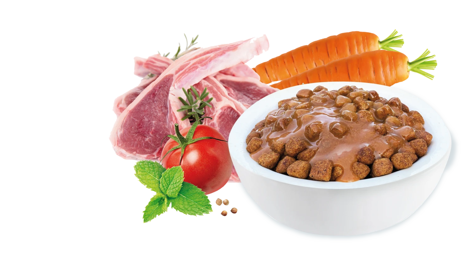 COMPOSITION: Purified Water, Dextrose Monohydrate, Lamb Hydrolysate, Tomato Paste, Brewers Yeast, Oat Flour, Oils and Fats, Carrot Powder, Minerals, Caramel, Turmeric, Dried Mint. Free from artificial additives, preservatives, or colours