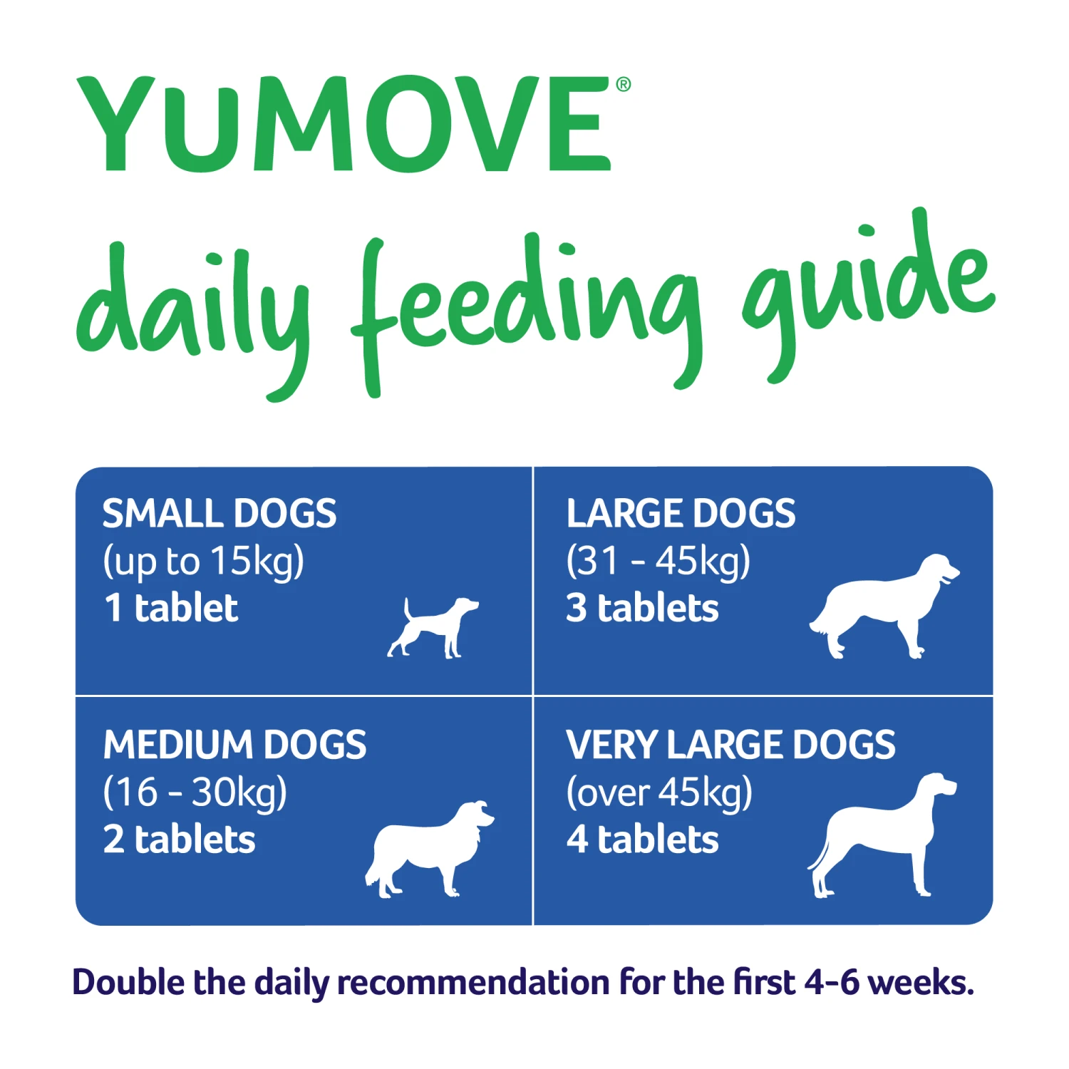 Following two and half years of rigorous clinical research by the Royal Veterinary College, YuMOVE is now the first joint supplement ever to be clinically proven to work in just 6 weeks. All the ingredients in YuMOVE have been carefully selected, based on the results of research that prove their beneficial effects for your dog’s joints. Unlike many joint supplements, YuMOVE does not include a long list of unproven ingredients.
